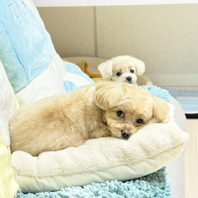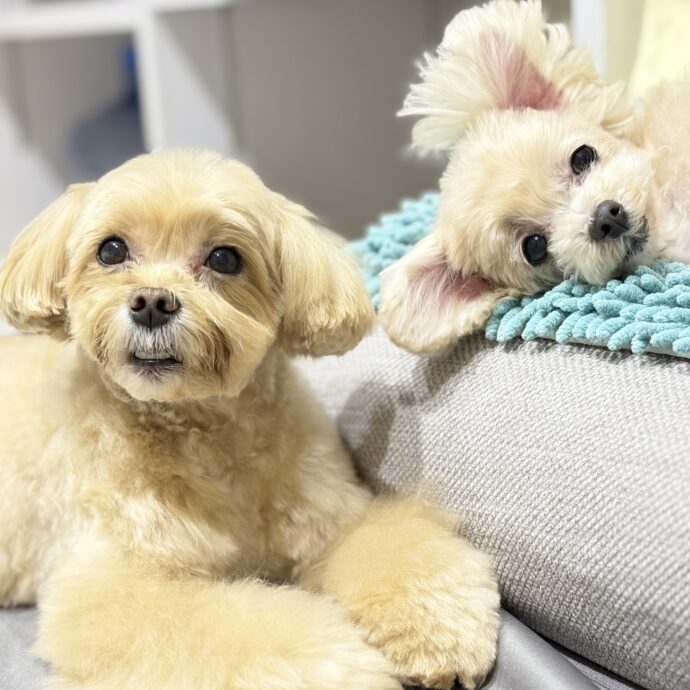 浜松市中央区のペットホテルのDogDesign CLEOです。ほとんど看板犬のお二人さんで~す😊浜松市中央区のDogDesign CLEOでは、現在トリミングとペットホテルのご予約を承っております。